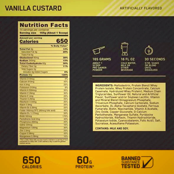 GOLD STANDARD Pro Gainer is a high-protein weight gain formula that delivers calories that count during recovery. Each serving is packed with 60 grams of high-quality protein to help kick-start recovery and 82 grams of carbohydrates to restore energy levels. GOLD STANDARD Pro Gainer provides you with the optimal formula for your post-workout shake or to support caloric-intake between meals.