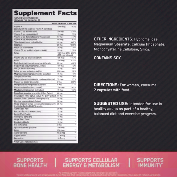 OPTI-WOMEN is more than a multi. It’s a Nutrient Optimization System providing 40 active ingredients including 23 vitamins and minerals designed to support the nutrient needs of active women. Each 2-capsule serving delivers wide-reaching nutrient support in Vegetarian Society approved Vcaps.¹