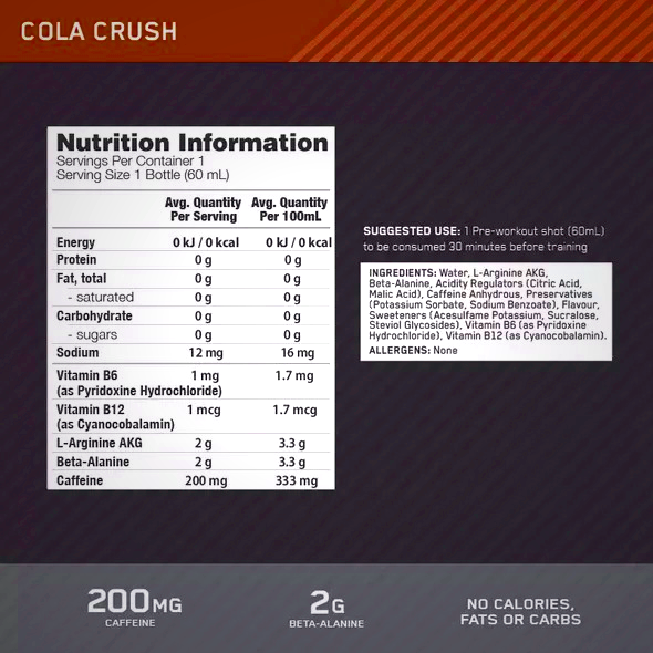 1 Pre-workout shot (60mL) to be consumed 30 minutes before training